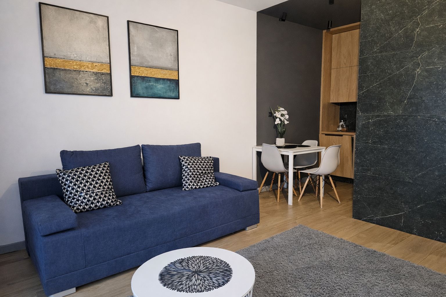 Apartament BLUE to doskonały wybór dla osób ceniących butikowy standard, nowoczesne wnętrze, świetną lokalizację oraz wysoki komfort pobytu – zarówno w celach turystycznych, jak i biznesowych.