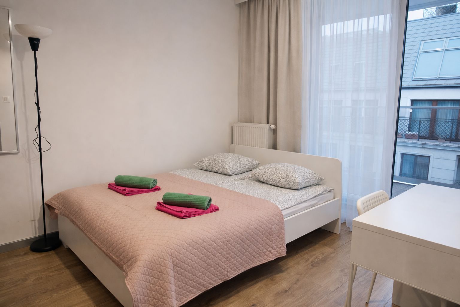 Jednym z największych atutów apartamentu jest bardzo duży balkon, wyposażony w meble wypoczynkowe, idealny do relaksu przy porannej kawie lub wieczornego odpoczynku po dniu spędzonym w mieście.