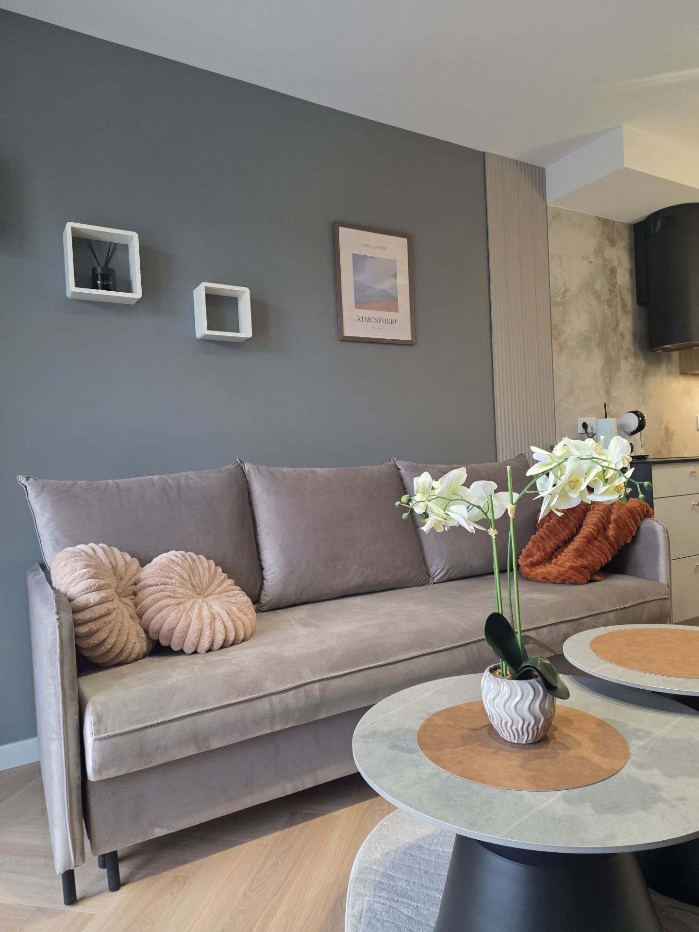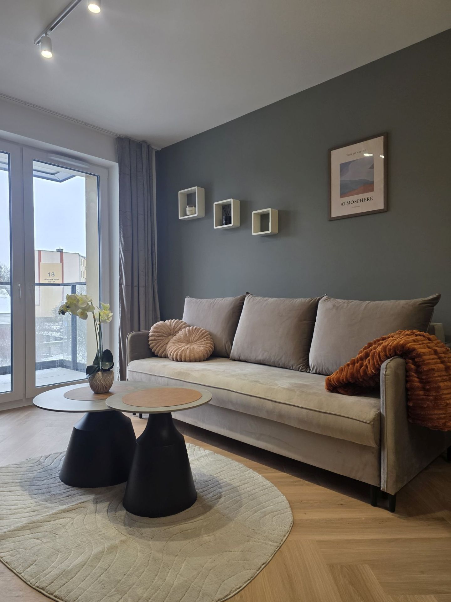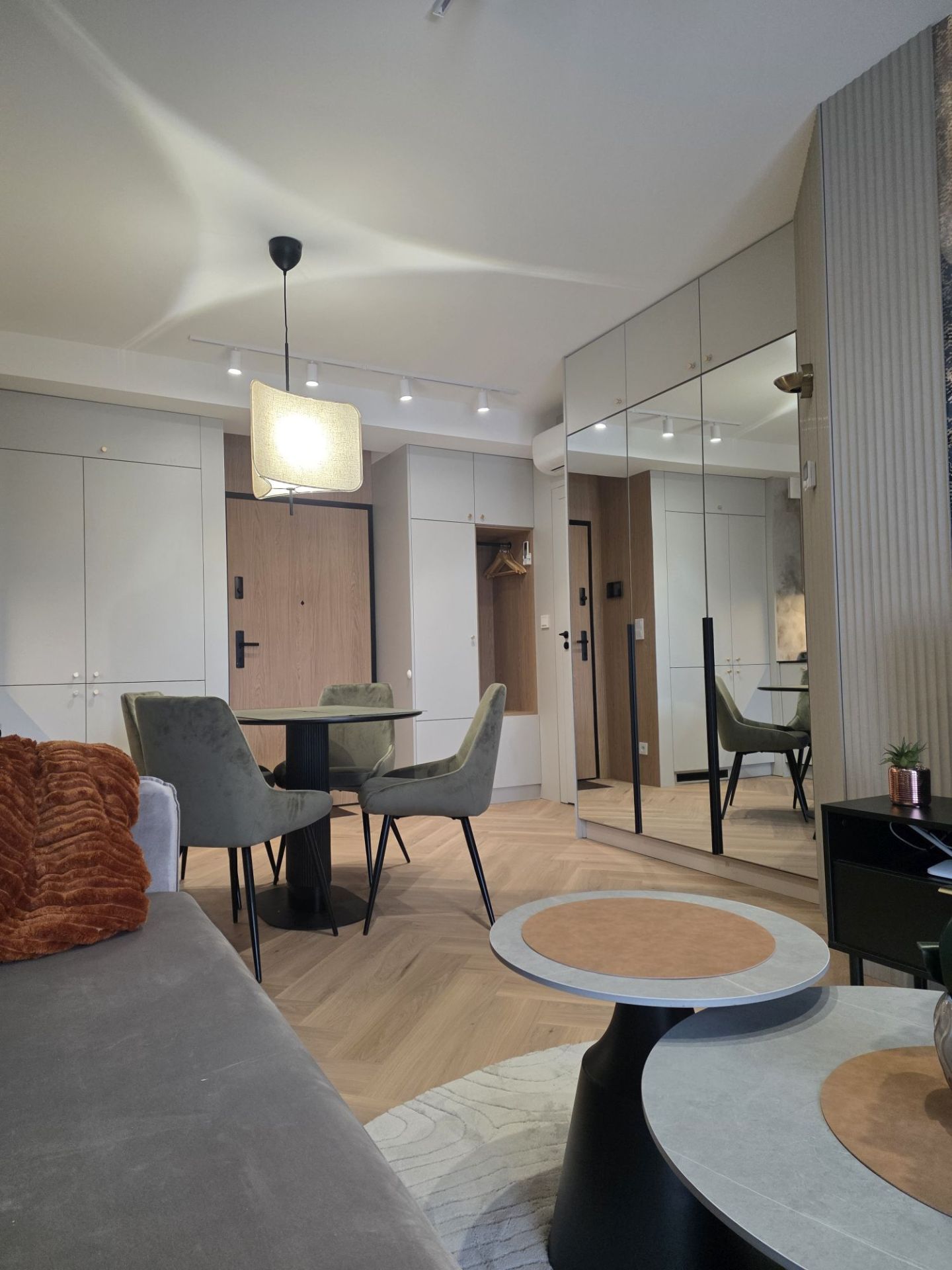 Apartament usytuowany jest w nowoczesnym budynku z windą. Wnętrze zostało zaprojektowane przez topowego białostockiego projektanta, z dbałością o każdy detal, funkcjonalność oraz estetykę. To przestrzeń stworzona z myślą o wygodzie zarówno gości biznesowych, jak i turystów.