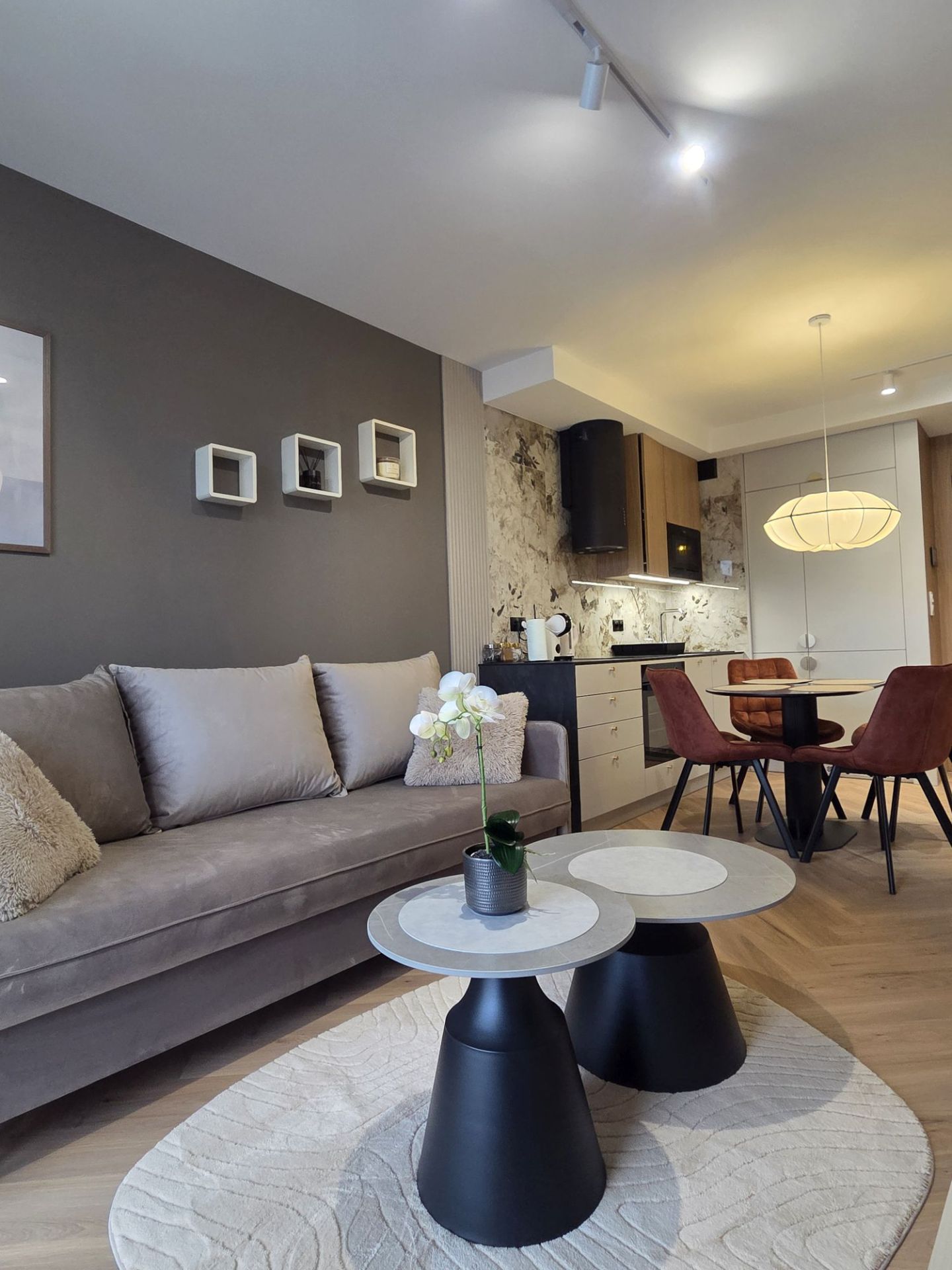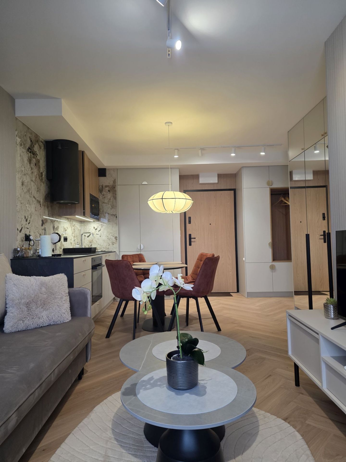 Apartament usytuowany jest w nowoczesnym budynku z windą. Wnętrze zostało zaprojektowane przez topowego białostockiego projektanta, z dbałością o każdy detal, funkcjonalność oraz estetykę. To przestrzeń stworzona z myślą o wygodzie zarówno gości biznesowych, jak i turystów.